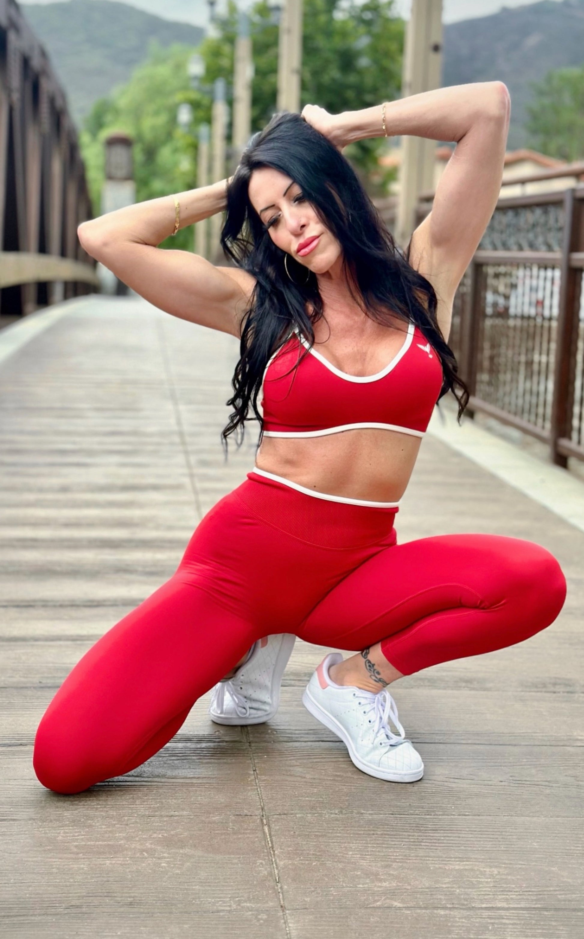 Turn heads with the Cherry Red Siren Set, featuring bold red and white lines that blend sporty vibes with a flirty edge. This striking duo is designed to make you stand out effortlessly, combining comfort and style for a look that's both confident and playful. Perfect for those who love to make a statement wherever they go. Sports bra comes with removable padding.